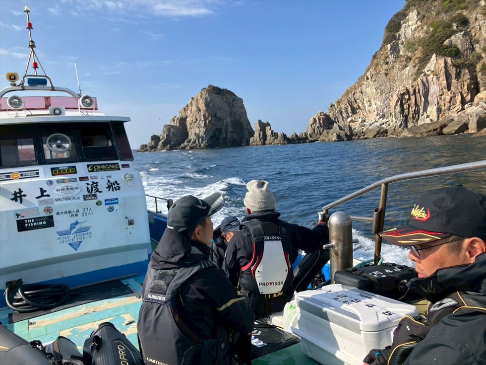 船頭さんに、3人仲良く同じ磯へ上がりたいと伝えてましたら、1番最後に荷物を積んで、とのお知らせ(^^)と言う事はですね、1番最初に磯上がりかな♪