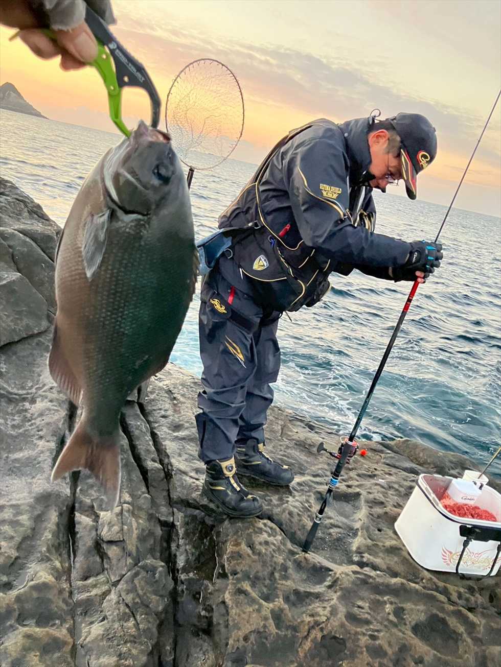 天気も良く、風もあまり無く、足場良し、楽しい1日となりました。この日、他の場所で58センチの尾長グレが釣れたそうですね。まだまだ柏島は未知な磯場です、ずっと楽しい釣り場である事を願っております。